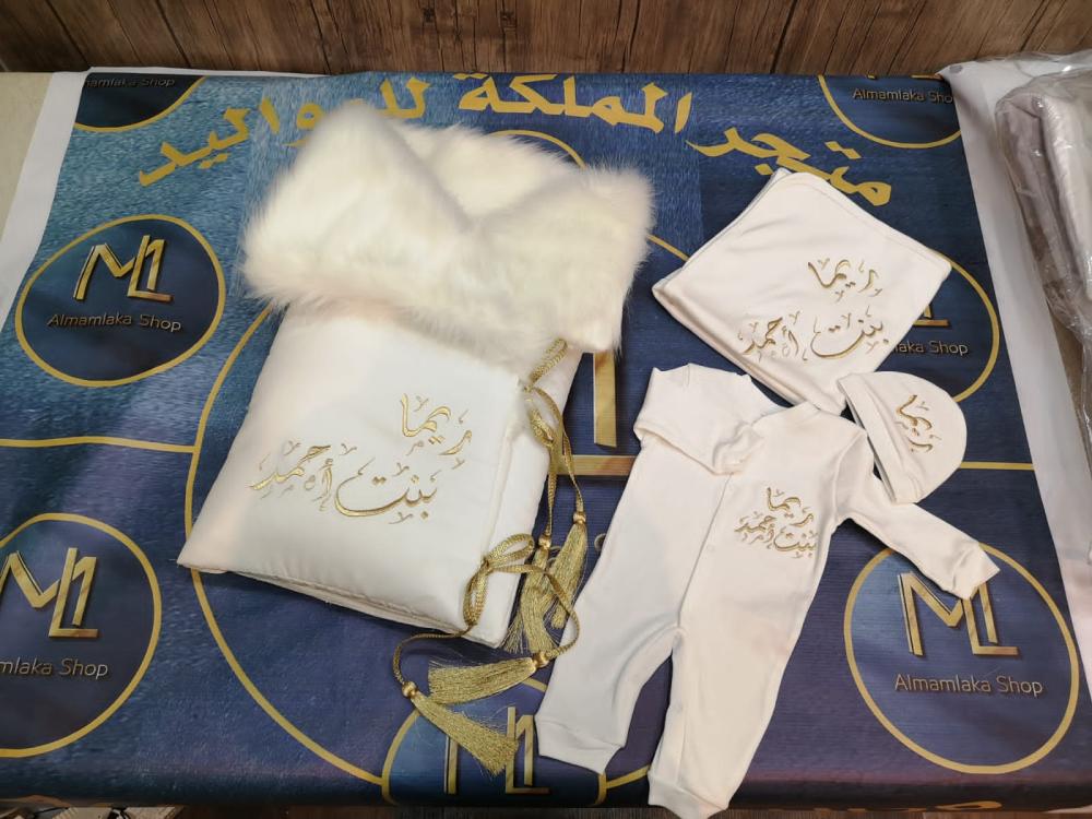 مدس مواليد طقم فخم بالفرو الناعم مبهر بحلة جديدة اكثر تميز ذوجوده عالية وفخامة التطريز المتقن وبقماش مريح لطفلك المولود من متجر المملكة للمواليد