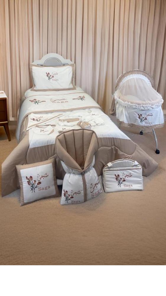 قدمي لمولودتكِ الجديدة استقبالاً مميزًا مع مفرش طقم نفاس واستقبال بألوان هادئة وخامات فاخرة عصري بتصميم مميز يضفي لمسة من الألوان الدافئة والأناقة الراقية اجعلي لحظات النفاس أكثر راحة وبهجة مع مفرش يجسد الجمال بخامة ناعمة ومريحة ذات تصاميم مميزة تلفت الأنظار تضيف لمسة جمالية على الديكور الداخلي.